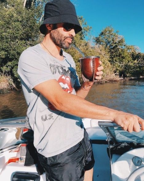 Una vez arriba de la embarcación, la pareja pudo disfrutar de un hermoso día de relax y compartieron varias postales en las redes. "Linda tarde en el río", escribió en una publicación en la que se lo ve con un mate en la mano disfrutando del sol. Sus seguidores llenaron el posteo de comentarios y más de uno lo felicitó por su ingeniosa invención.
