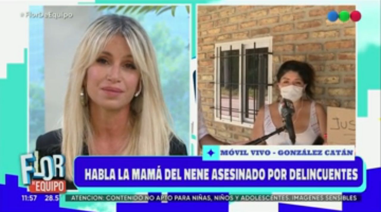 Flor no pudo disimular la emoción y quebrada en llanto le dedicó unas palabras desde su corazón. "Te abrazamos desde acá. Te juro que siento tu dolor porque soy mamá. Te abrazo fuerte y ojalá que tengan justicia. Por tu chiquito y por todos los chiquitos que no merecen pasar por algo así. Te mando un beso enorme, enorme, y gracias por haber salido a dar tu testimonio", señaló.