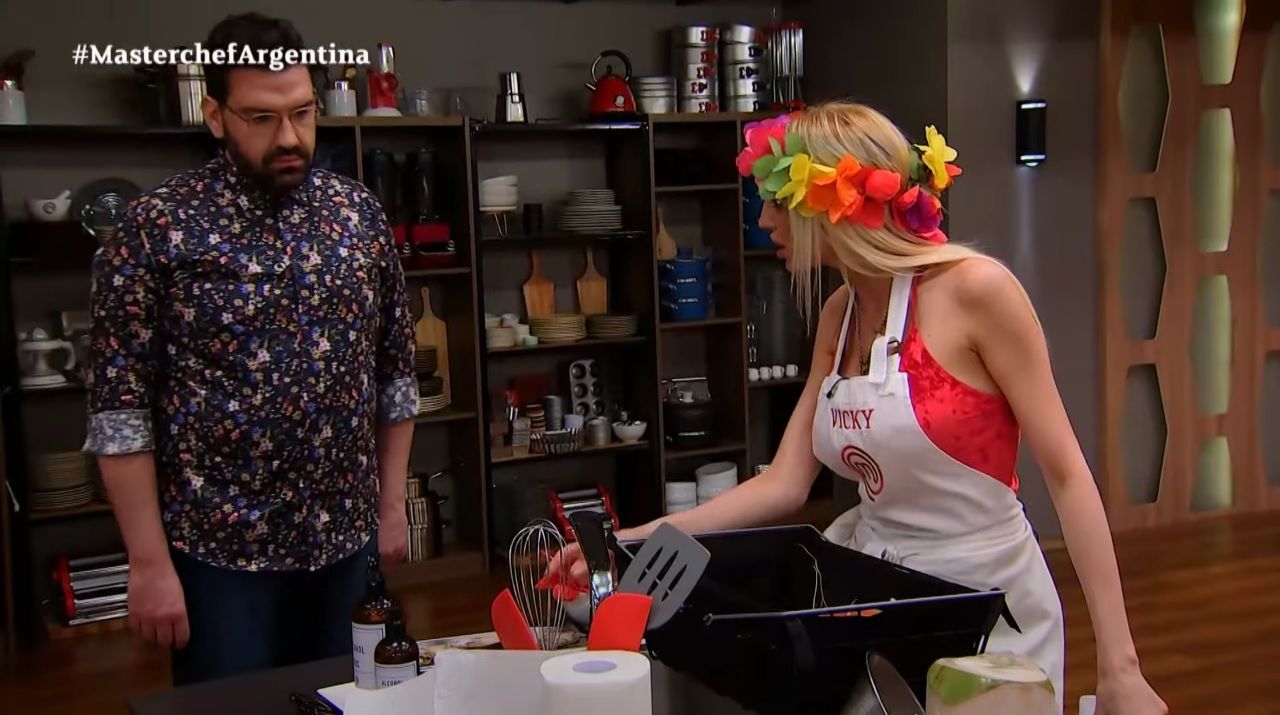 "Creo que me copió, no el sabor, pero vino a pispear y un poquito me robó", respondió la actriz tratando de suavizar la situación. "No recuerdo, pero yo no copio. Me gusta ser espontánea", se defendió Vicky. Cuando Claudia Villafañe pasó adelante saltó otra prueba incriminatoria para la vedette. "Vicky copió de acá también, al final copió de todos los platos", señaló Damián Betular.