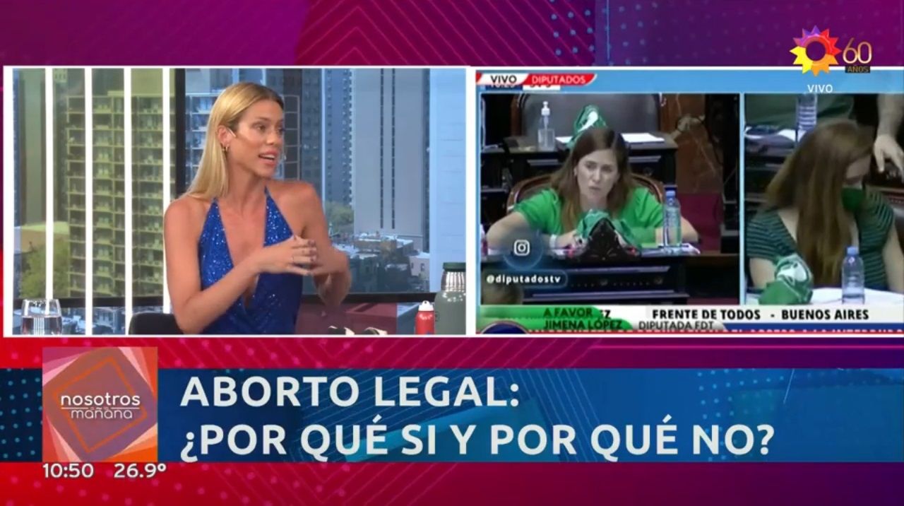 "El reconocimiento va a salvar todas esas vidas de las mujeres sin dinero. Porque las mujeres con dinero lo hacen, cierran la boca, lo hablan con quien quieren, tienen otra decisión que parte de una cuestión económica. Por eso el aborto voluntario como justicia social, para terminar con esta franja que hay entre las mujeres que no pueden decidir a dónde ir a abortar y las que sí", expresó la ex pareja de Jorge Rial frente a la desaprobatoria mirada de la modelo.