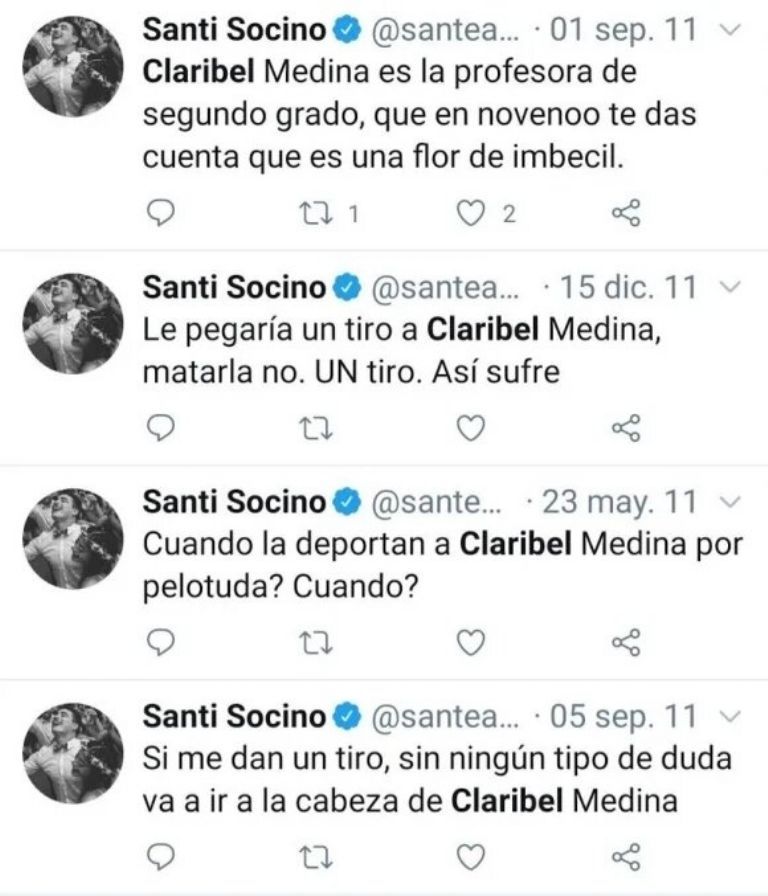 La selección argentina de rugby protagonizaron una tremenda polémica luego de que salieron a la luz varios tuits racistas, machistas, xenófobos, antisemitas, clasistas y discriminatorios de Pablo Matera, Guido Petti y Santiago Socino. Fue éste último quien le dedicó repudiables posteos a Claribel Medina, quien luego de expresar su indignación reveló que recibió un mensaje privado del jugador de Los Pumas.