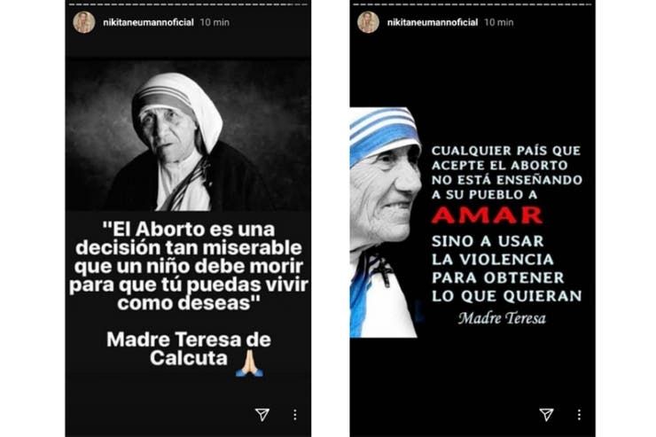 También citó varias frases de la Madre Teresa de Calcuta para reafirmar lo que siente: "El aborto es una decisión tan miserable que un niño debe morir para que tú puedas vivir como deseas".