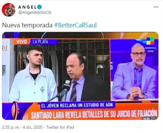 "Nueva temporada Better Call Saul", escribió el conductor de LAM, dudando de la credibilidad del entrevistado. Luego Ángel citó una frase del abogado: "No me importa la plata". En ese segundo tweet, De Brito replicó en su muro una polémica entrevista de Núñez, hablando del dinero que está "invirtiendo" en este resonante caso.