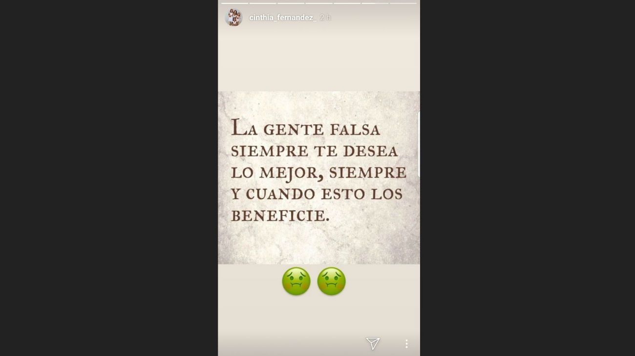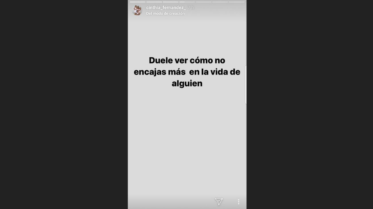 Cinthia Fernández sigue lucha contra la desolación que le dejó su separación de Martín Baclini. Sin embargo, no estaría encontrando el camino para dar vuelta la página y seguir adelante.