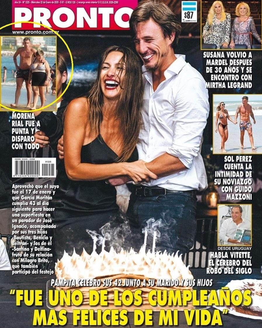 Morena Rial y Facundo Ambrosini decidieron tomarse unos días en Punta del Este para descansar. Fue durante esas vacaciones que la revista Pronto tomó una foto de la pareja, que saldría en la tapa del miércoles 22. Mientras que el tema central de la portada fue el cumpleaños de Pampita, la imagen de Morena salía en un pequeño recuadro en la parte superior izquierda, bajo el título "Morena Rial fue a Punta y disparó con todo".