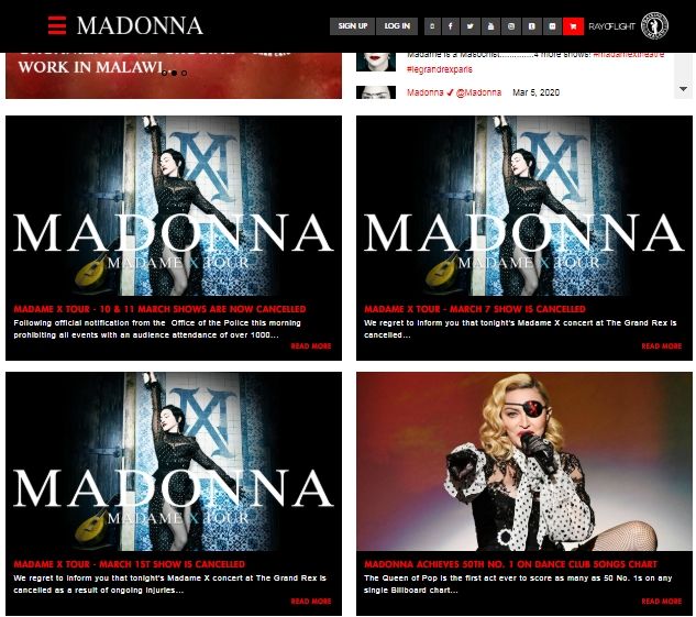 Por su parte, Madonna también tomó la decisión de cancelar su gira europea. La Reina del Pop dio de baja los conciertos que le quedaban pendientes a su "Madame X Tour" en París, según se informó su página web.