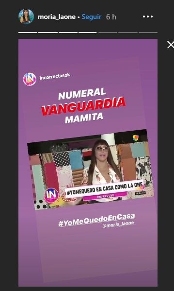 Una de ellas es Moria Casán que tiene 73 años por lo que es una paciente de riesgo, debido a esto decidió conducir su programa Incorrectas desde su hogar. Sin embargo en la tarde ayer cuando estaba en medio del mismo, le agarró un fuerte ataque de tos que hizo que todos se alarmaran. Sobre esto La One dijo "Ay tengo tos soy humana" para que nadie saque falsas conjeturas sobre lo sucedido.