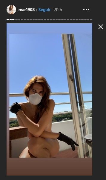 ¿Se olvidó de vestirse?: Mariana Genesio Peña subió una foto sin nada de ropa pero con guantes y barbijo