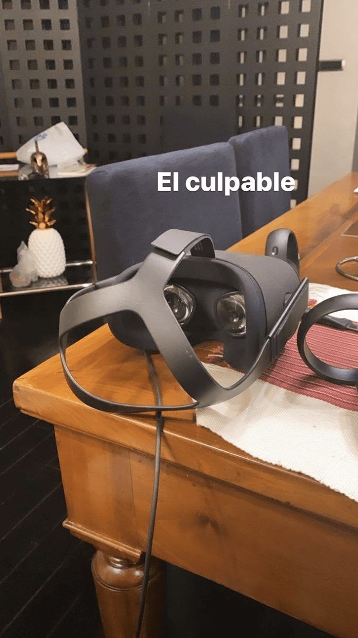 De tanto jugar con unos anteojos de realidad virtual, la marca del aparato le quedó en la frente: “¡El culpable!”, indcó Oriana en otra foto.