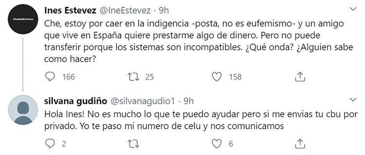 "Estoy igual que tanta gente. Y sí: indigencia es no tener para morfar", resaltó Inés, aunque contó que finalmente le llegó el dinero enviado desde España: “Mis amigos resolvieron el modo de enviar algo de dinero”.