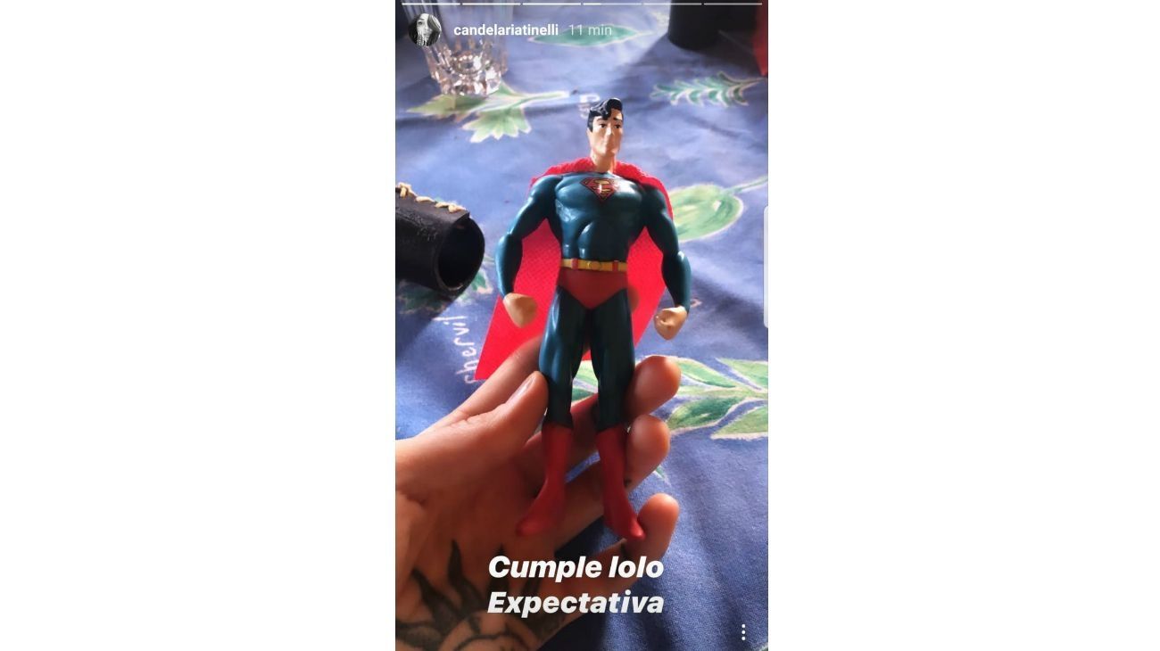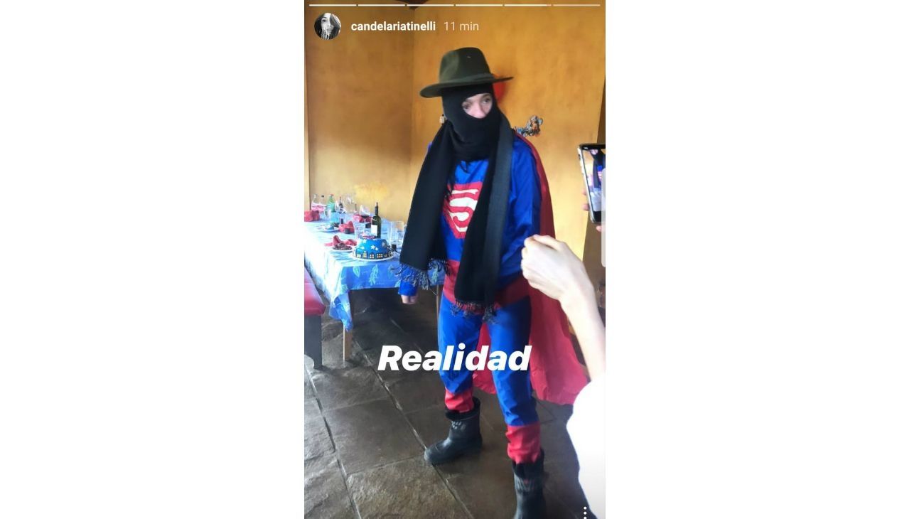 “Expecativa para el cumple de Lolo”, escribió Cande junto a una imagen en donde sostiene un muñeco del personje, para luego compartir “la realidad” y mostrar a su papá vistiendo el traje arrugado, un pasamontañas, una bufanda y un sombrero, una suerte de superhéroe patagónico.