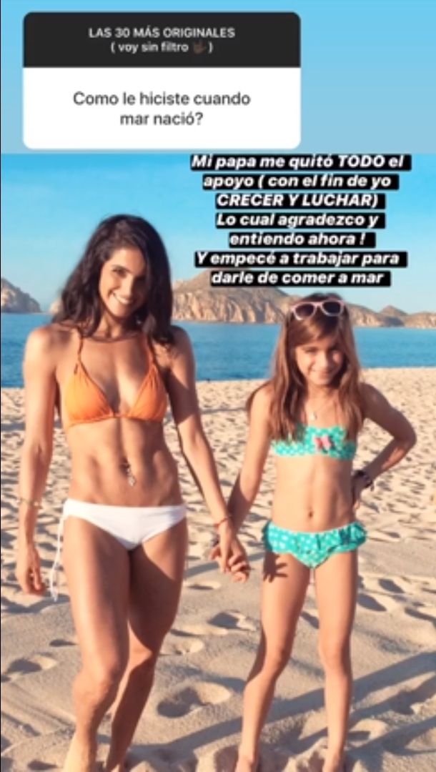 La actriz los dejó sin palabras cuando respondió: “Mi papá me quitó TODO el apoyo (con el fin de yo CRECER Y LUCHAR). Lo cual agradezco y entiendo ahora. Y empecé a trabajar para darle de comer a Mar”. La mexicana acompañó su respuesta con una foto de ella junto a su hija en la playa agarradas de la mano.