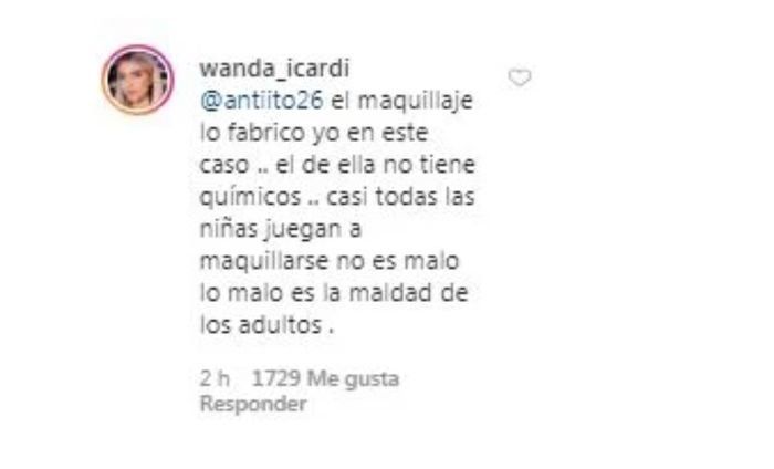 La esposa de Mauro Icardi reaccionó ante los cuestionamientos de una usuaria que le criticó el maquillaje que utilizan sus hijas.