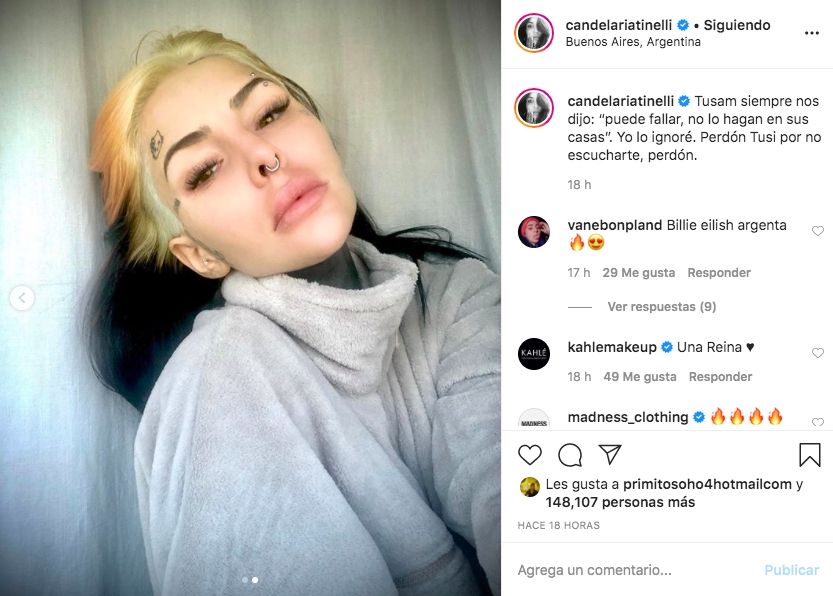 Ahora volvió a meter mano, esta vez en su departamento de Palermo, para convertirse en rubia. Y luego de decolorarse por sus propios medios, el resultado fue... "Tusam siempre nos dijo: ‘Puede fallar, no lo hagan en sus casas’. Yo lo ignoré. Perdón Tusi por no escucharte, perdón", publicó al pie de las fotos. "Cuando intentaste ser rubia en casa, pero sos medio pony salvaje", lamentó.