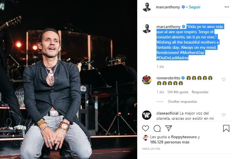 ¡Todo un galán! Marc Anthony enamora a todos con el mensaje que le dedicó a su madre