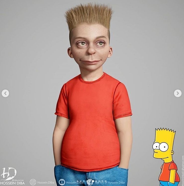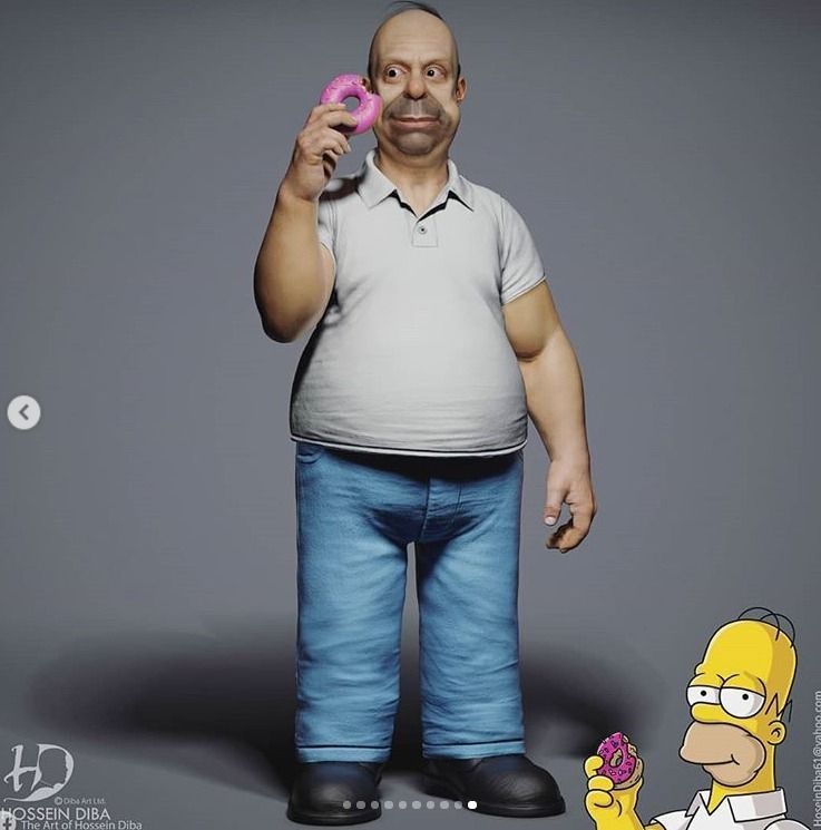 La misma está compuesta por Homer, Marge, Bart, Lisa y Maggie Simpson que en esta oportunidad fueron recreados por el artista plástico Hossein Diba, especializado en modelos 3D de personajes de videojuegos y cómics.