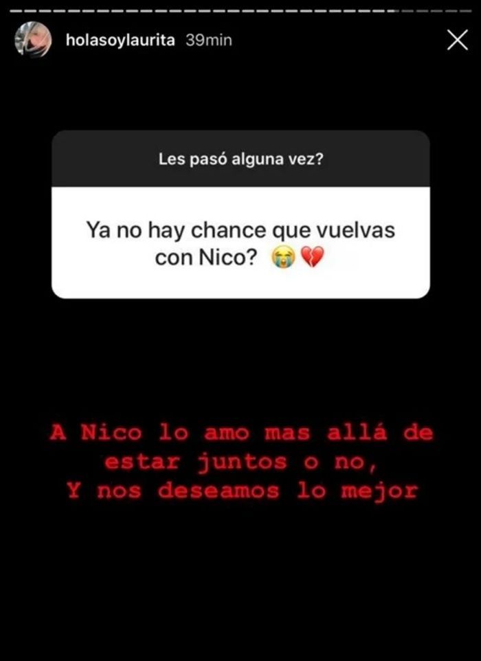 Ahora, Laurita respondió preguntas de sus seguidores en Instagram y una de ellas estuvo referida a una posible reconciliación con Cabré.