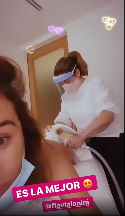 En el reciente video publicado en la red social Instagram se puede ver a Yanet García recostada sobre una camilla y recibiendo un masaje profesional en contra de las acumulaciones de grasa. Al grito de "Te amo flavia" la ex chica del clima agradece el profesionalismo de la señora que le hace el tratamiento.