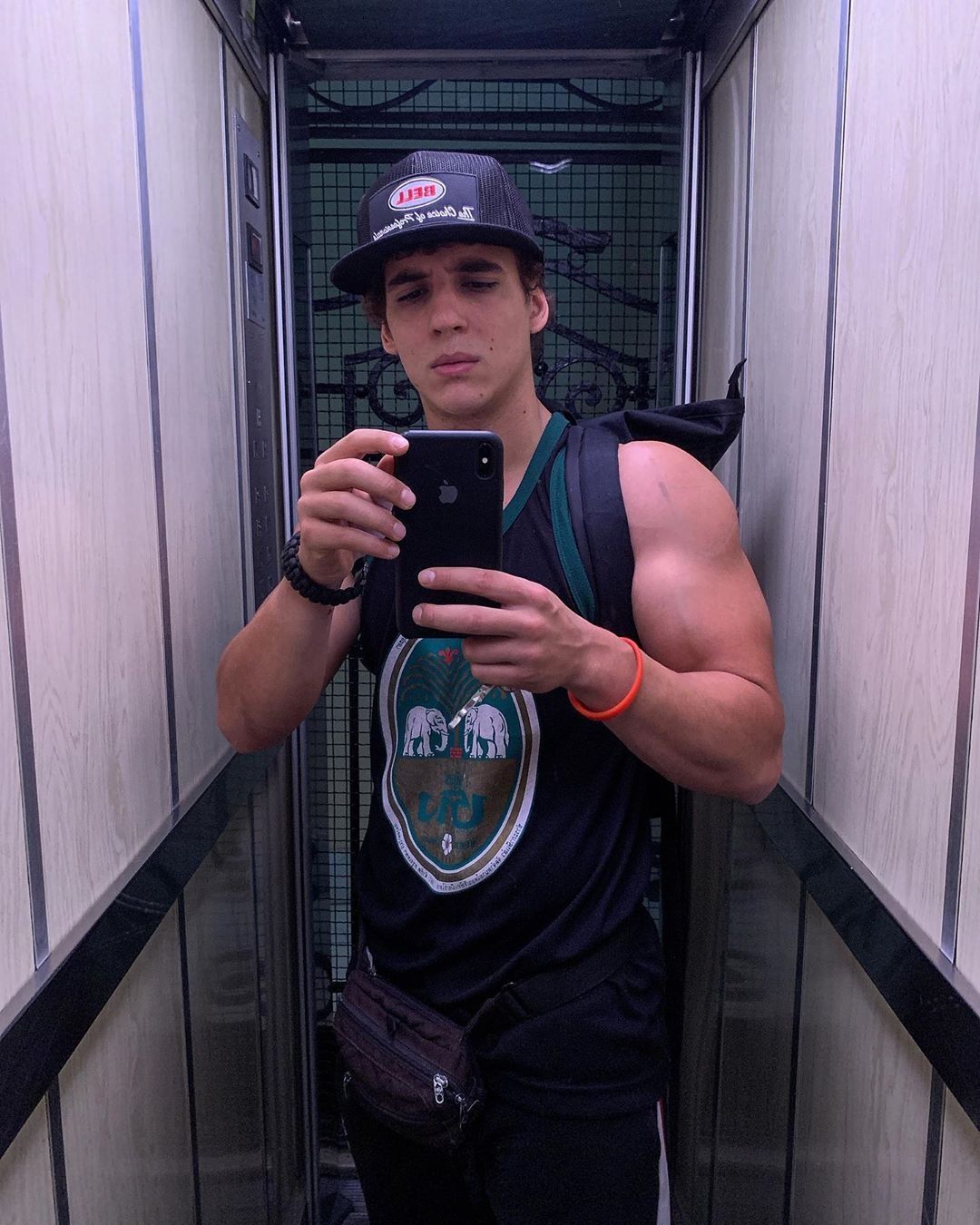 Tras compartir en las redes sociales hace unos meses una foto frente al ascensor de un espejo luciendo su torneado brazo y con un look veraniego, apareció un meme suyo. Al ver su cómica imagen Miguel Herrán no dudó en reaccionar.
