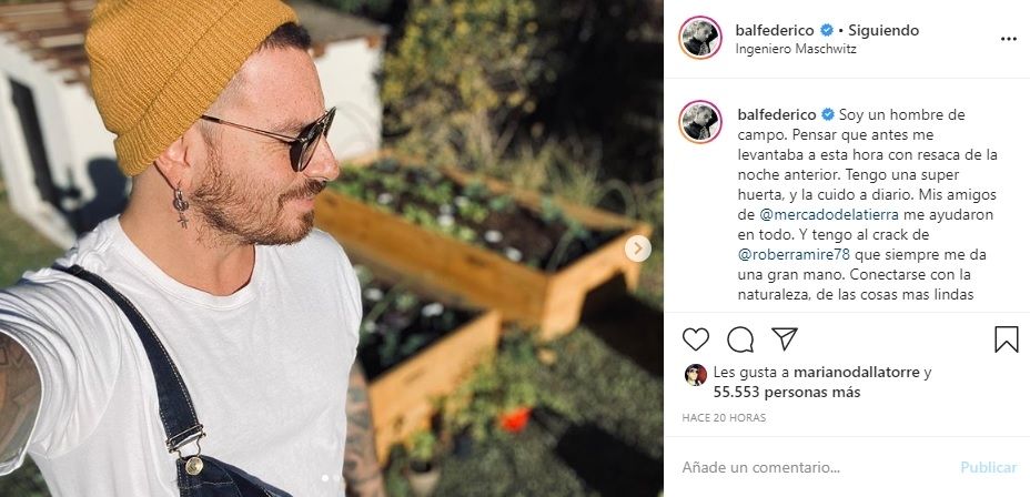 En las últimas horas sorprendió a todos con sus nuevos hábitos. "Pensar que antes me levantaba a esta hora con resaca de la noche anterior. Tengo una super huerta, y la cuido a diario. Conectarse con la naturaleza, de las cosas más lindas que me enseño este encierro”, reveló.