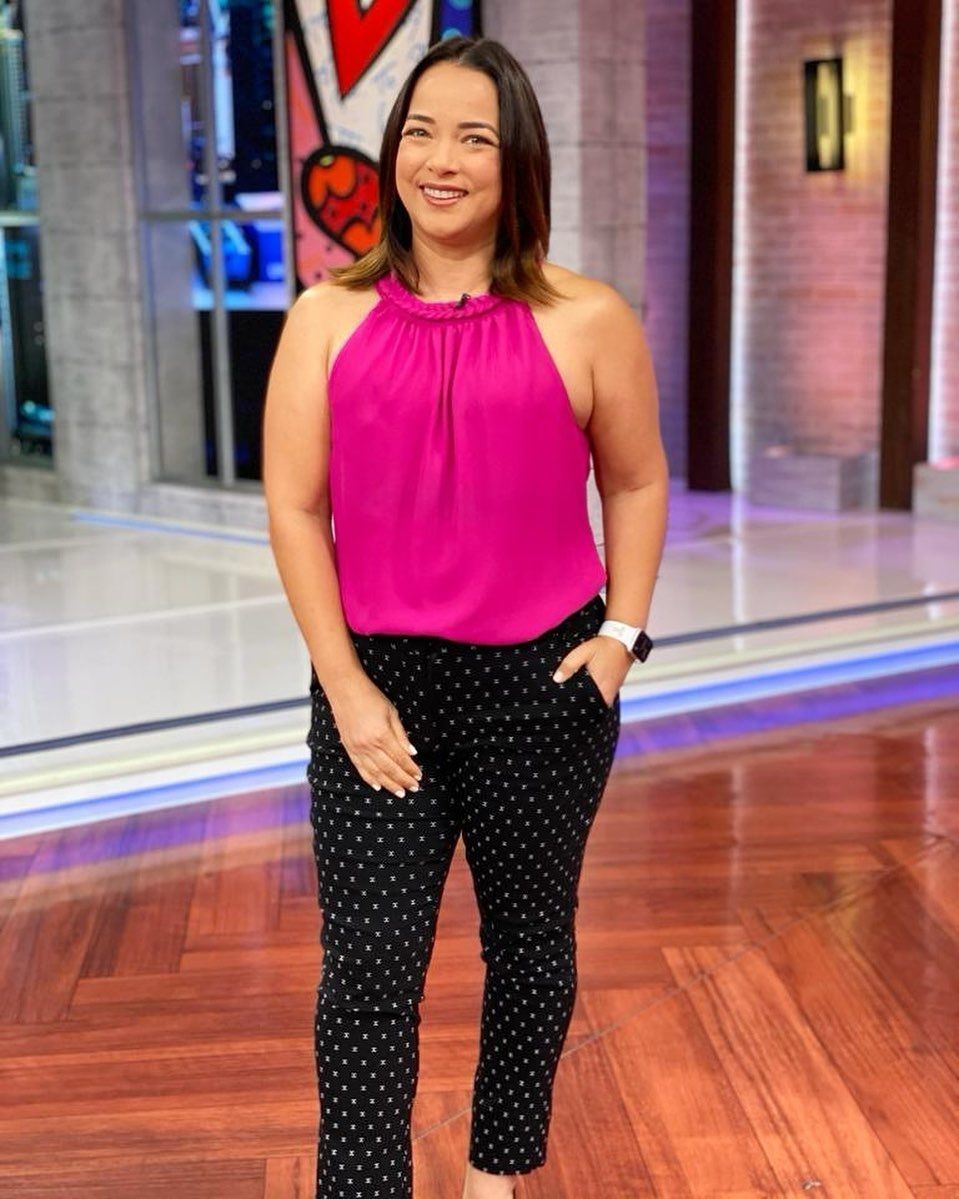 Hace algunas horas el programa de televisión matutino de la cadena Telemundo, “Un nuevo día” compartió en sus redes sociales una imagen de Adamari López que enamoró a los followers. En ella podemos observar a la ex esposa de Luis Fonsi con un pantalón de lino negro con lunares blancos y una blusa fucsia atada al cuello y su característica bonita sonrisa.