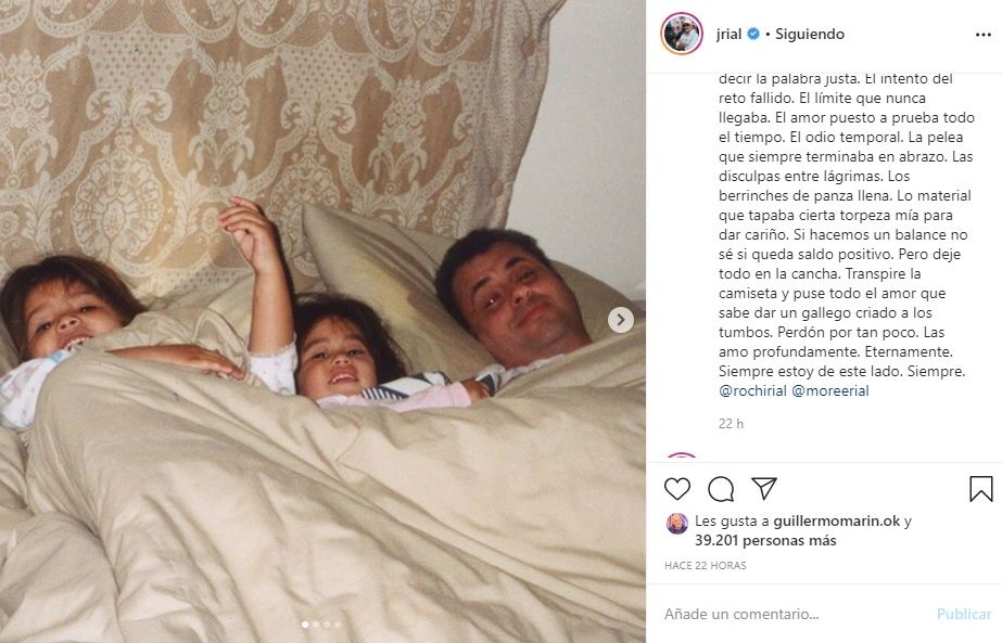 "Si hacemos un balance no sé si queda saldo positivo. Pero deje todo en la cancha. Transpire la camiseta y puse todo el amor que sabe dar un gallego criado a los tumbos. Perdón por tan poco. Las amo profundamente. Eternamente. Siempre estoy de este lado. Siempre", cerró la publicación junto a varias fotografías de la infancia de las niñas.