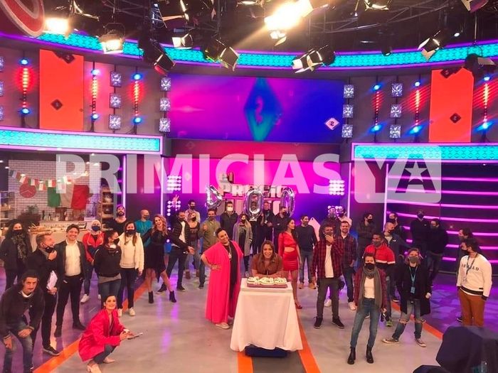 Falta de distancia social y de tapabocas es lo que puede observarse en una imagen correspondiente a la celebración de los 400 programas de El precio justo.
