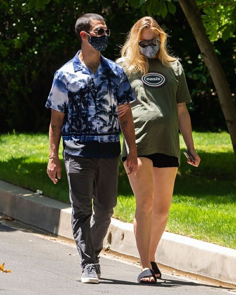 En los últimos días Sophie y Jonas fueron captados por las cámaras caminando por las calles de Los Ángeles, Estados Unidos. En las imágenes se puede observar el avanzado estado de embarazo de Sophie Turner, ambos lucen felices y con un look descontracturado.