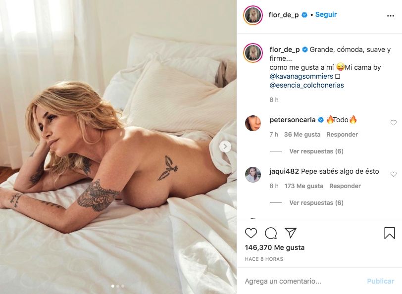 La actriz apareció en la red social Instagram junto con una frase que tomó por sorpresa a más de un desprevenido. "Grande, cómoda, suave y firme... como me gusta a mí", escribió Flor, para luego aclarar que estaba haciendo referencia a la cama que promocionaba en su posteo.
