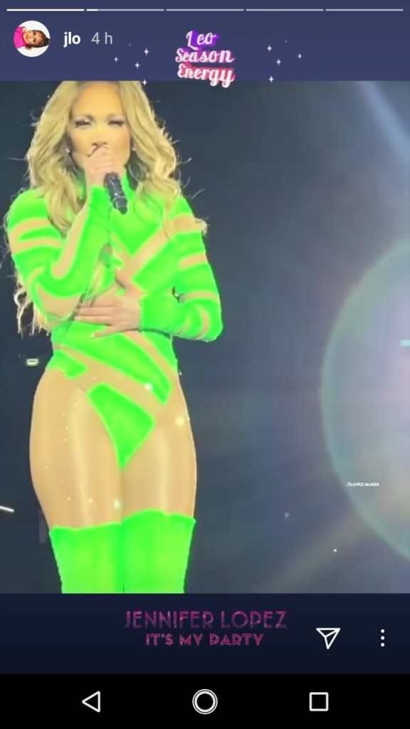 En tanto que hace unas horas atrás la Jennifer Lopez compartió una historia en su cuenta de Instagram de uno de sus shows del año pasado que dejó emocionados a sus seguidores que sueñan con verla una vez más en vivo arriba del escenario.