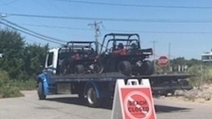 JLo llegó a las playas junto a sus dos hijos, Emme y Max, conduciendo cada uno un buggy. El problema fue que se olvidaron de llevar el permiso de circulación correspondiente y sus autos especiales para la arena fueron confiscados.