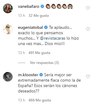Pero esta aclaración de parte de la publicación no logró acallar las críticas. Entre las voces que se alzaron en contra se encuentra la de Carla Peterson, quien publicó en Instagram la portada y compartió un texto de la cuenta @mujeresquenofuerontapa para generar conciencia sobre los estereotipos de belleza.