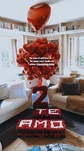 El impactante regalo que Dybala le hizo su pareja: una estructura del número dos decorada con rosas y globos rojos.