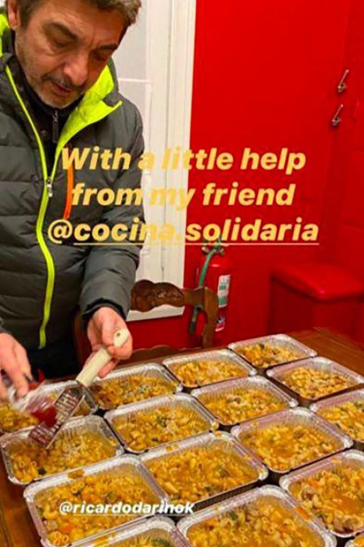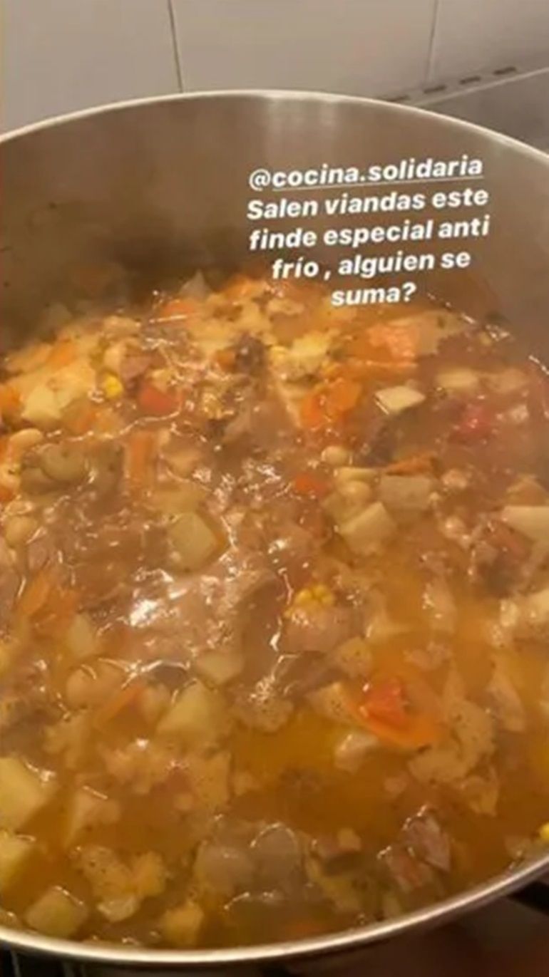 En este contexto, el actor y su mujer, aprovecharon el fin de semana para aportar lo suyo. Blas fue mostrando el paso a paso del gran guiso que hicieron entre los dos. "Salen viandas este finde especial antifrío, ¿alguien se suma?", fue el mensaje que acompañó la foto. En otras de las imágenes, se lo puede ver a Ricardo preparando la donación en bandejas de aluminio, las que se utilizan para que mantengan el producto caliente por más tiempo.