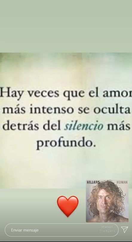 "Hay veces que el amor más intenso se oculta detrás del silencio más profundo", escribió junto a la canción Human de The Killers. ¿Será un mensaje encubierto para Guillermina?