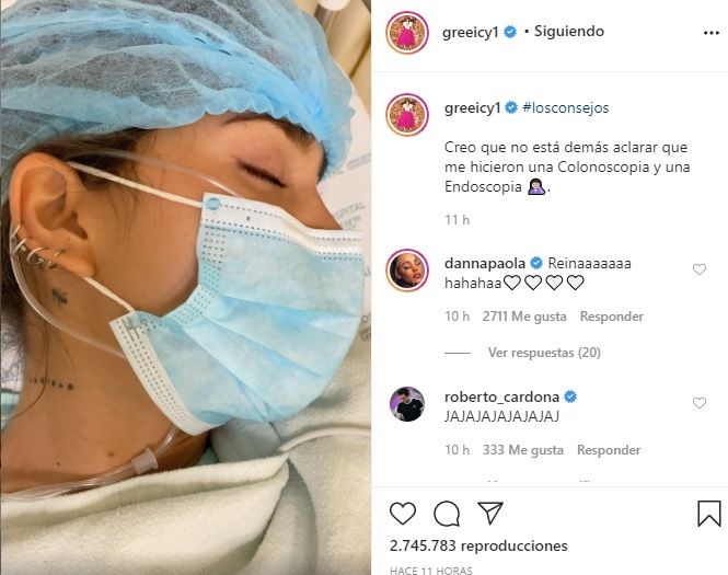 Sin embargo no es todo color de rosa ya que en su último posteo de Instagram subió un video donde se la ve que pasó por el consultorio para hacerse una colonoscopia y una endoscopia. Esto hizo que la actriz y cantante Danna Paola le escriba un mensaje de aliento.
