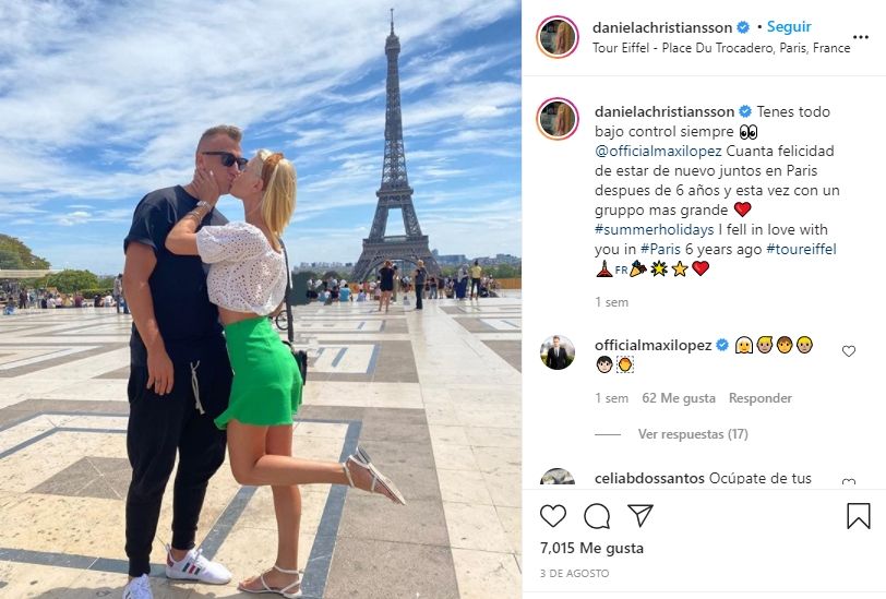 Con Maxi comenzaron a salir en agosto de 2014 y llevan seis años en pareja. "Tenés todo bajo control siempre @officialmaxilopez. Cuánta felicidad de estar de nuevo juntos en París después de seis años, y esta vez con un grupo más grande" escribió Christiansson en un post reciente, donde se la ve junto al futbolista con la torre Eiffel detrás.