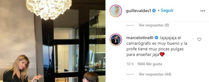Guillermina dedicó en su publicación simpáticas palabras hacia Tinelli, aunque sin nombrarlo directamente: "un cámara encubierto tomando la escena sin autorización (los basta son para él, no para Lolo)".