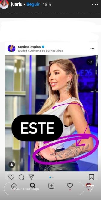 Según la periodista Juariu, dicha mujer es Malaspina. Y lo descubrió justamente por el diseño que lleva en su piel. Hasta el momento la conductora de Canal 26 no ha hecho referencia a los rumores.