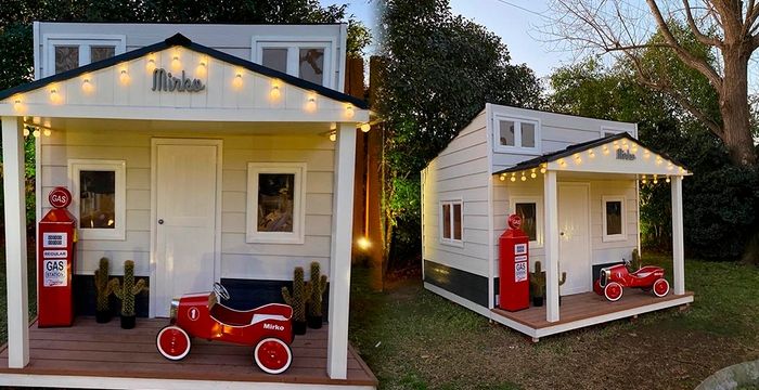 La casa de juegos es imponente, tiene una decoración con estilo vintage americano pocas veces vista, que incluye almohadones bordados y empapelados temáticos a pedido del pequeño en cuestión. Dependiendo los detalles, terminación y adicionales, el precio de las casas parte de los 200.000 pesos.