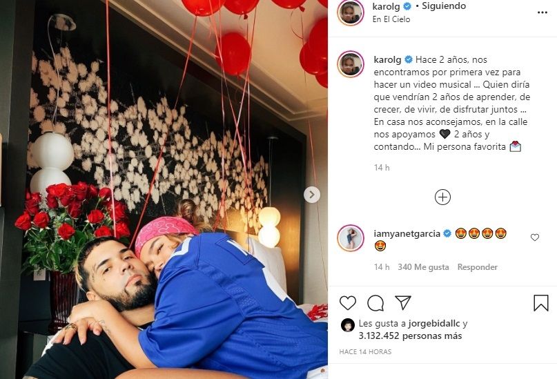 Hace unas horas atrás la artista colombiana compartió en su cuenta de Instagram un amoroso mensaje por los dos años de relación que lleva con su actual pareja Anuel.