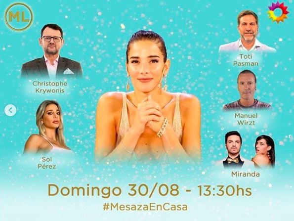 Por su parte, el ciclo del día domingo a las 13 hs, Almorzando con Mirtha Legrand, tendrán grandes invitados del mundo del espectáculo. La mesaza contará con la visita de Christophe Krywonis, Sol Pérez, Toti Pasman y Manuel Wirtz. Además, Ale Sergi y Juliana Gattas (de Miranda) se harán presentes de manera virtual.