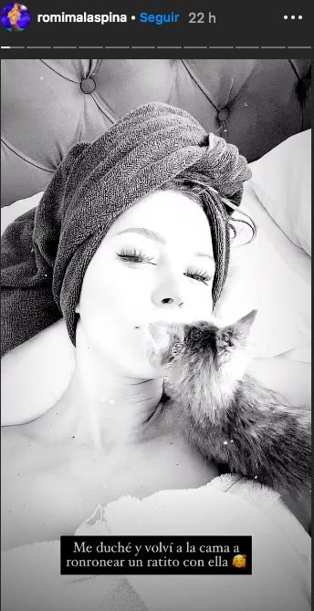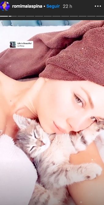 Luego de los rumores de romance entre Romina Malaspina y Ecko, después que el trapero compartiera una foto en la que se ve una rubia detrás suyo, y que por sus tatuajes, muchos aseguran que se trataba de la conductora de Canal 26, la modelo se grabó en la intimidad de sus casa y optó por mostrar su nueva acompañante: una gatita.