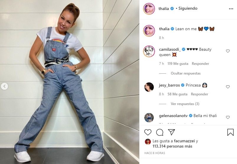 Esta vez no fue la excepción ya que en su más reciente posteo de Instagram, Thalía les mandó un mensaje a sus seguidores que decía: "Lean on me" (cuenta conmigo).