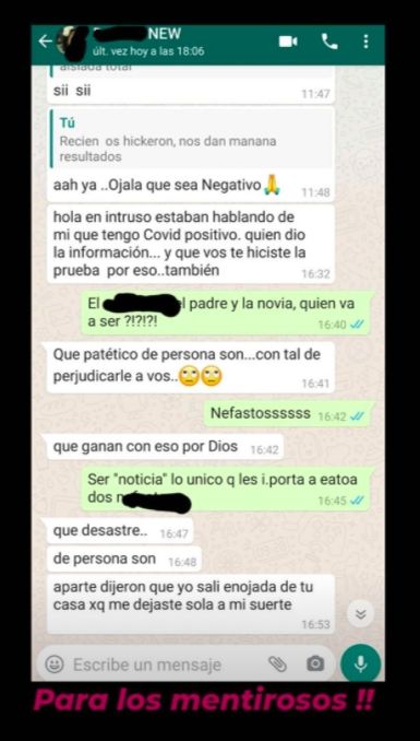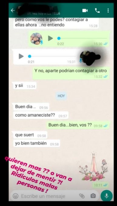 Nicole mostró con capturas que su empleada le escribió sorprendida porque esa información haya trascendido. "Hola, en Intrusos estaban hablando de mí, que tengo Covid positivo. ¿Quién dio la información? Y que vos te hiciste la prueba por eso... también", le manifestó la mujer.
