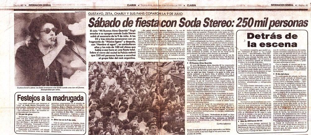 Pero eso no fue todo. El 14 de diciembre convocaron a más de 250 mil personas en un show gratuito en plena Avenida 9 de julio en el marco del ciclo Mi Buenos Aires Querido. Se televisó en vivo por Canal 13, demostrando que la popularidad y el ascenso de la banda parecía ya no tener techo.