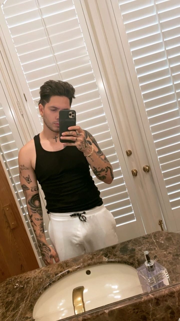 En la jugada pic se puede ver a Pantoja frente al espejo sacándose una foto luciendo una musculosa negra y un apretado jogging que remarca su miembro viril.