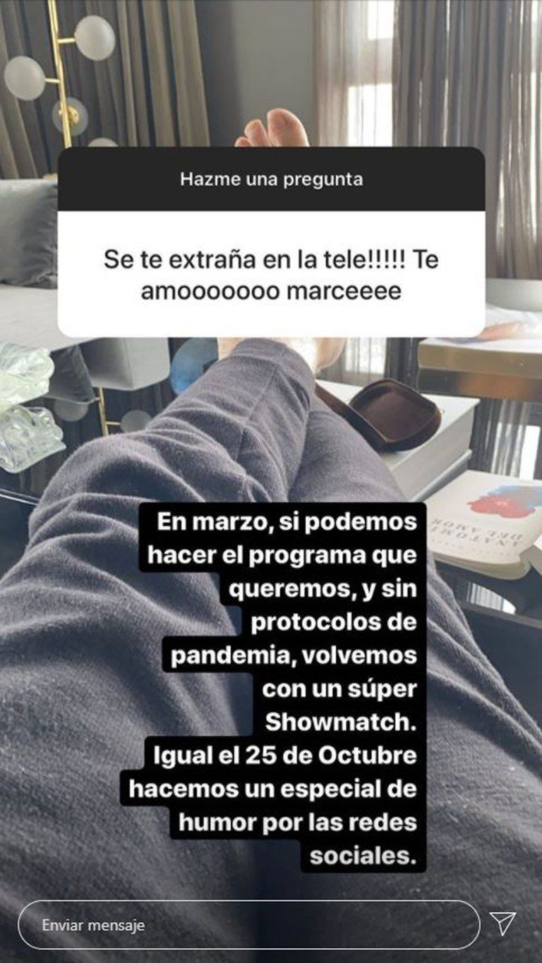 “En marzo, si podemos hacer el programa que queremos, sin protocolos de pandemia, volvemos con un súper ShowMatch”, reveló. Y agregó: “En el 2021 volvemos con todo”.