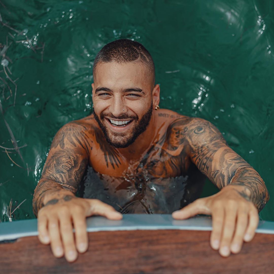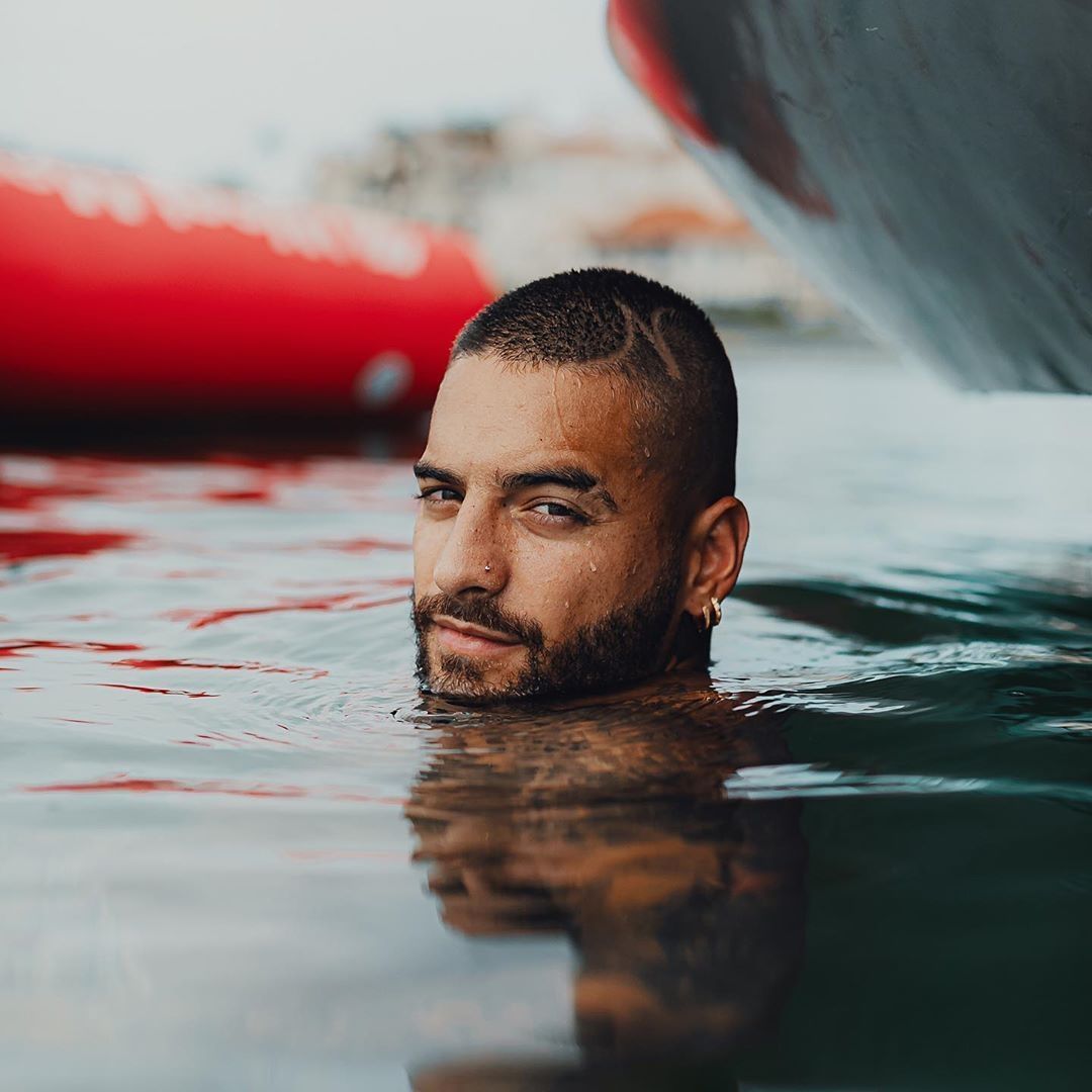 En las mismas se puede ver a Maluma sumergido en el agua sonriendo. El detalle que llamó la atención de sus fans es la marca que se puede observar en su corto cabello.