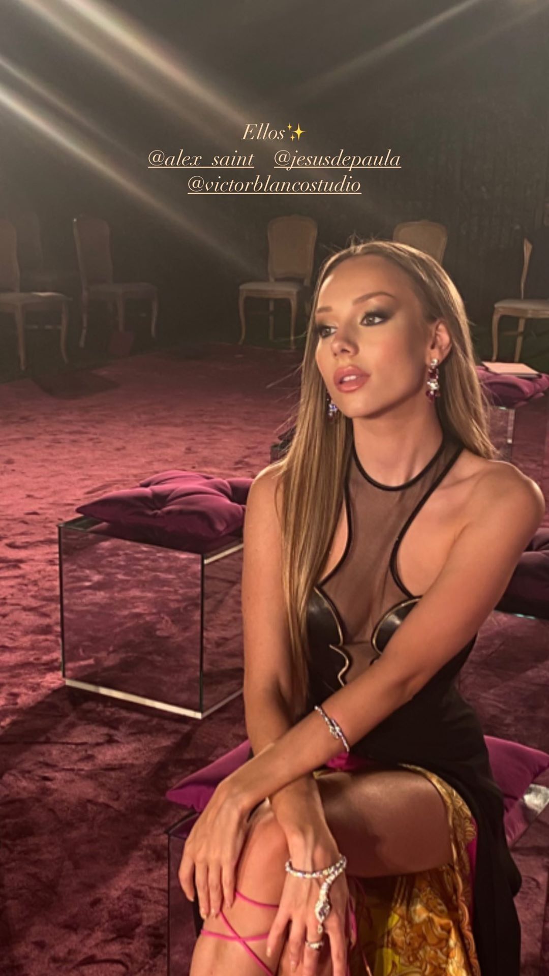 Ambos contenidos multimedia fueron compartidos por Expósito a través de sus historias de Instagram. En la mismas se la puede ver con un vestido corto negro con detalles traslucidos.
